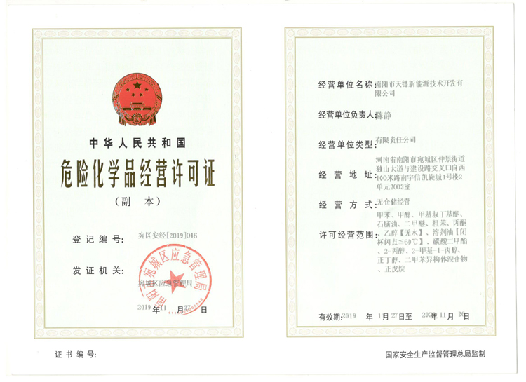 天德危險品許可證